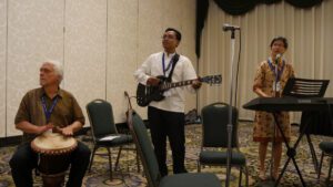 Agus Mayanto of Indonesia, chair of the Global Mission Fellowship, plays guitar during a musical performance. Photo by Max Wiedmer